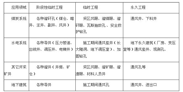 反井鉆機施工(也稱天井鉆機)施工主要用于地下井筒建設中。反井鉆機應用范圍見下表: